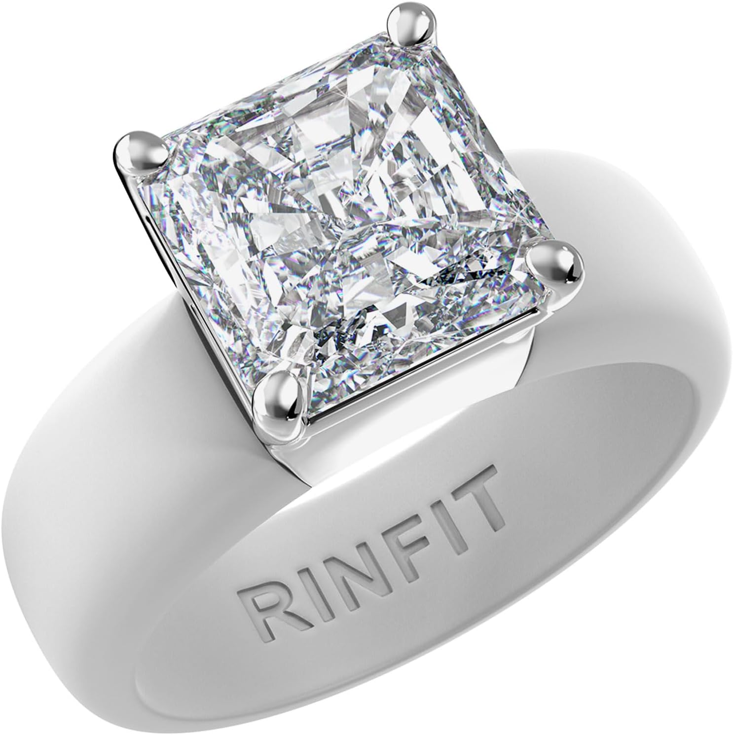 Rinfit Silicone Ring with Stone - Princess Cut Cubic Zirconia Solitaire Engagement Ring for Women - Rubber Wedding Bands - Patented Design