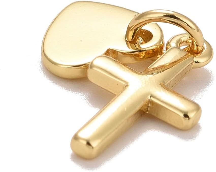 KitBeads 10Pcs 18K Gold Plated Heart Cross Charms Brass Love Crucifix Pendant Charm for Jewelry Making Bracelets Necklaces Crafts Bulk