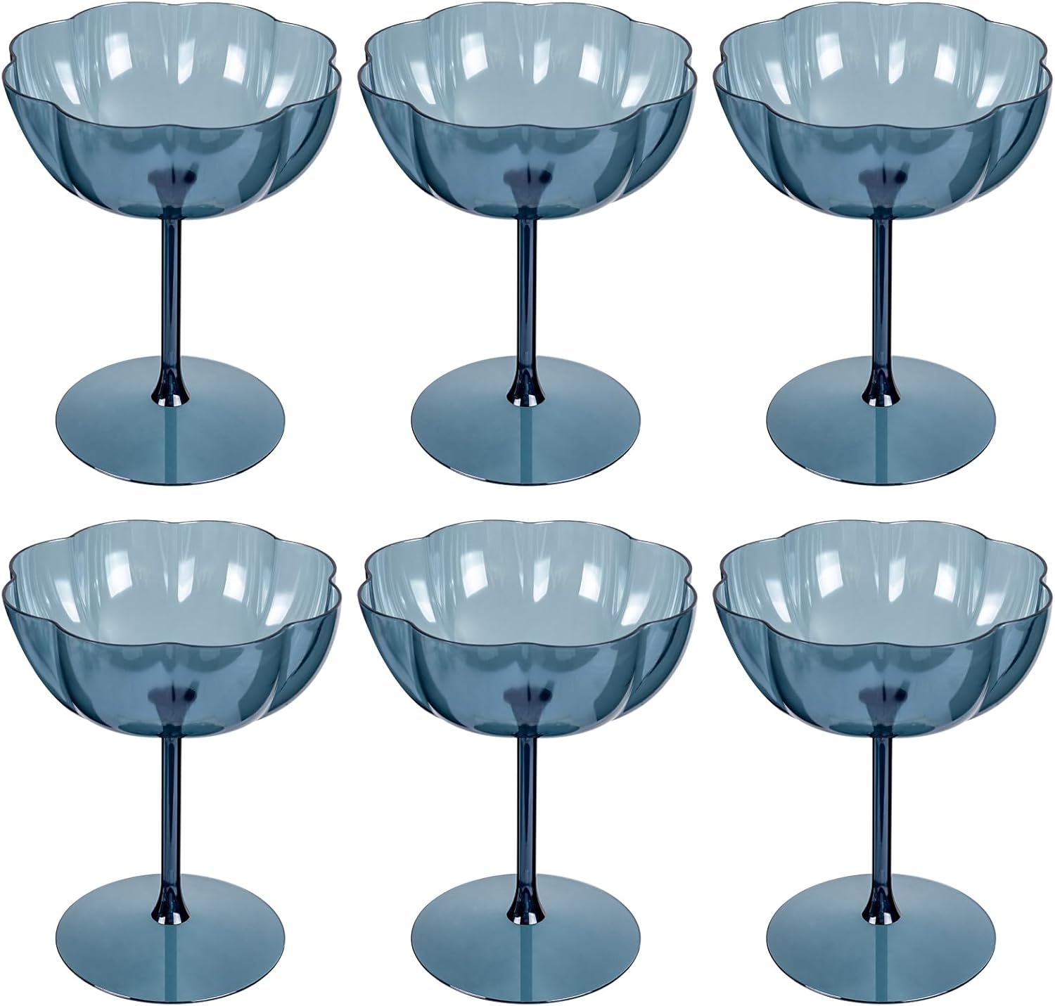 Ciaell 12PCS Plastic Martini Glasses - 10 Oz Blue Elegant Disposable Cocktail Glasses for Champagne Wine Wedding Party Anniversary Bar