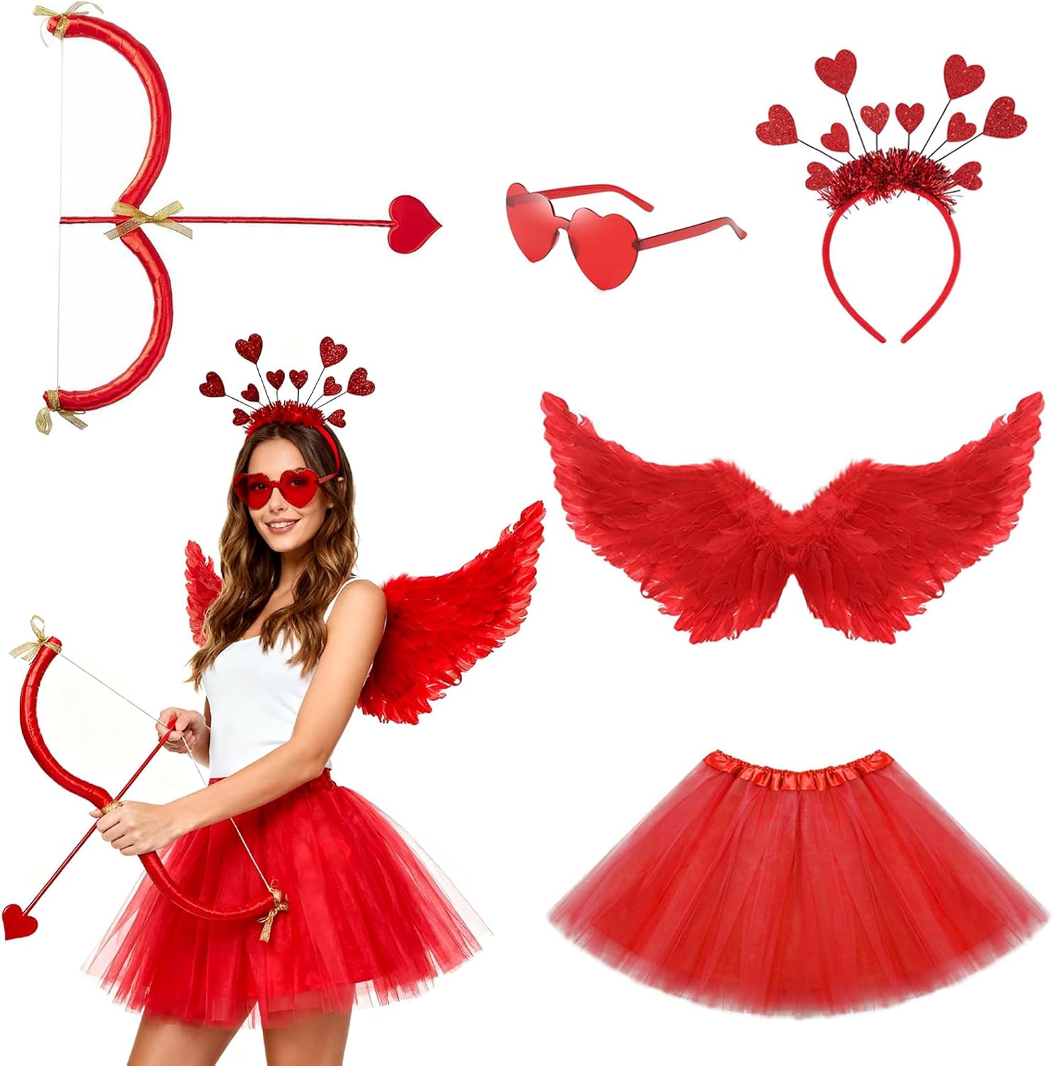 Valentines Day Cupid Costume Women Include Cupid Bow Arrow Feather Wings Tutu Skirt Heart Glasses Headband