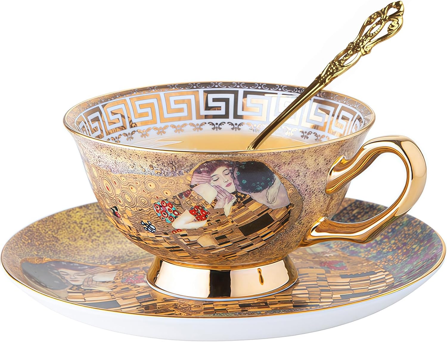 - Art-Inspired Design: This teacup features exquisite patterns that add an artistic touch to every use. The cup body is finished with a full-circumference shimmering gold coating, exuding understated luxury. Every sip becomes a blend of art appreciation and daily comfort, making it stand out from plain tableware.