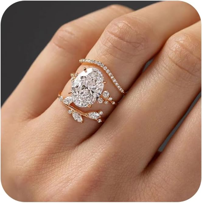 RKKOJJO 925 Sterling Silver Bridal Rings Sets AAA Cubic Zirconia CZ Full Diamond Engagements Rings Wedding 3 Pcs Promise Anniversary White Gold Rings for Women Size 10