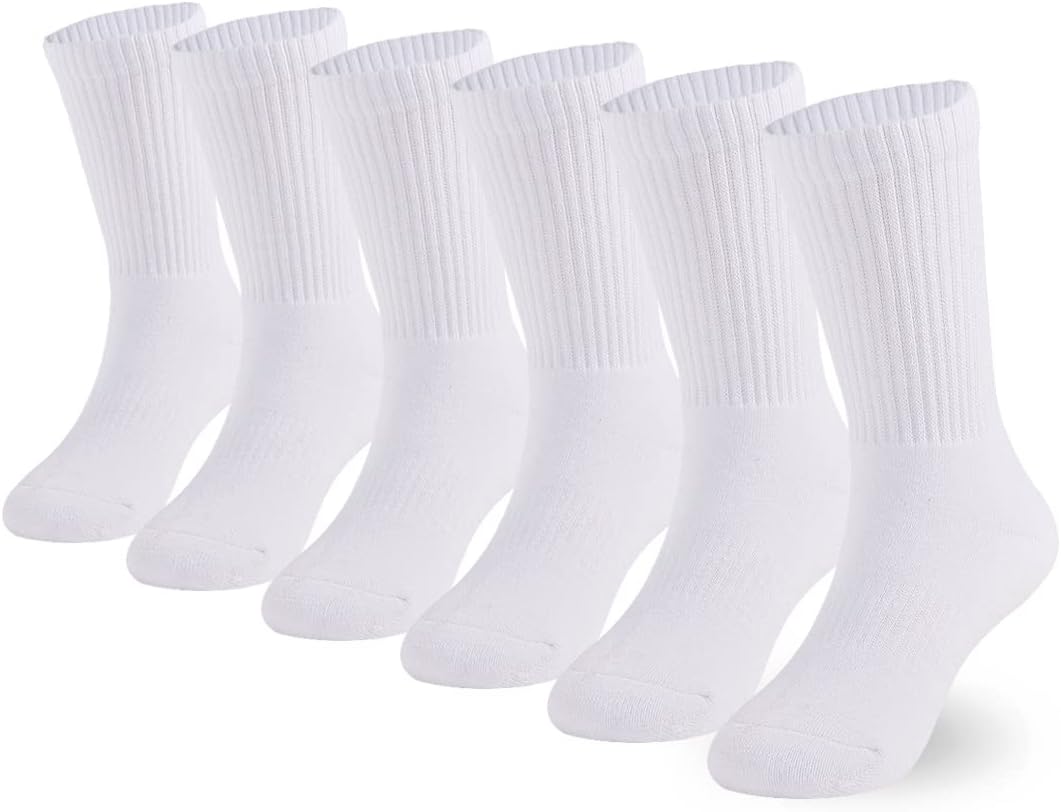 Marchare Boys Socks Kids Cushioned Crew Socks Girls Thick Cotton Athletic Running Socks Black/White 6 Pack
