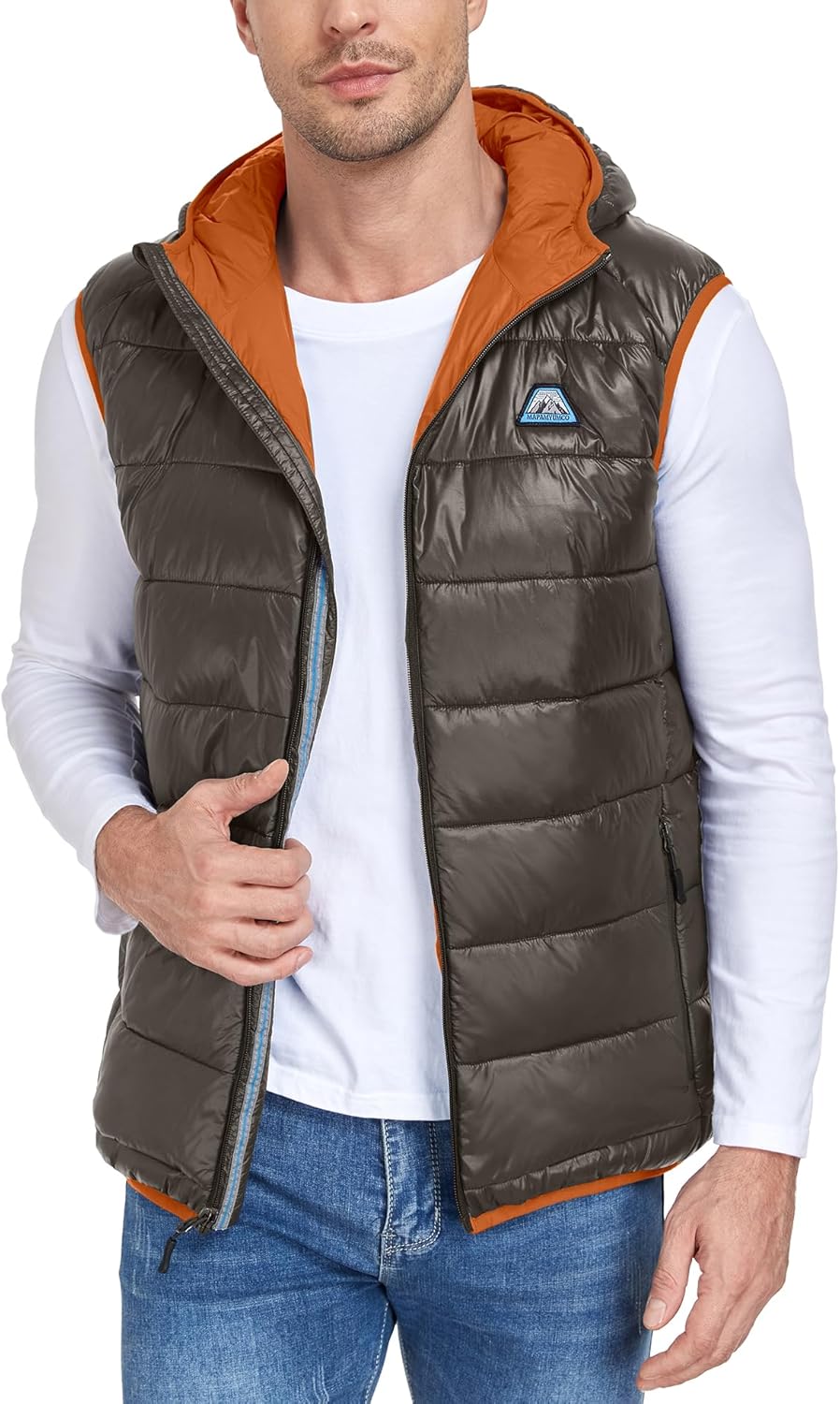 Mapamyumco Men's Hooded Puffer Vest Waterproof Lightweight Quilted Puffer Vest Full Zip Sleeveless Jacket Winter Outerwear