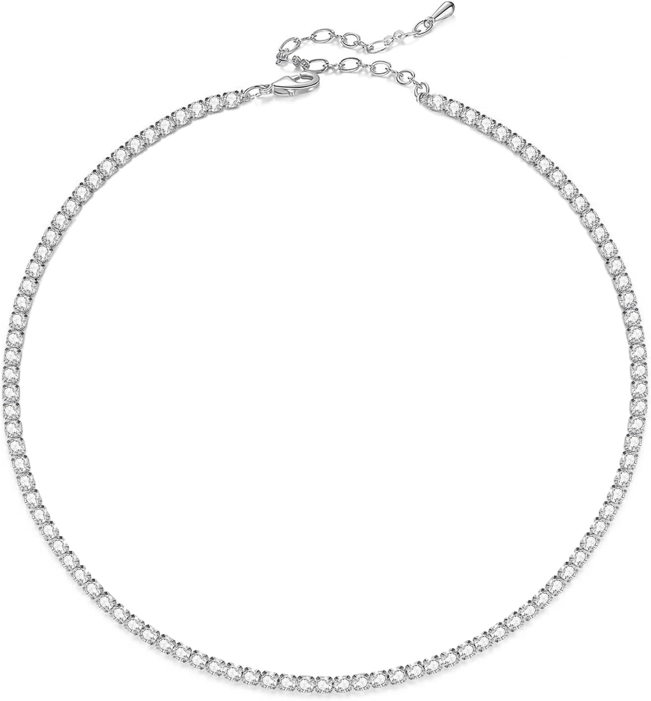 Dainty Women Tennis Choker Necklace Pink Blue Simulated Cubic Zirconia Diamond Necklace 3MM Chain
