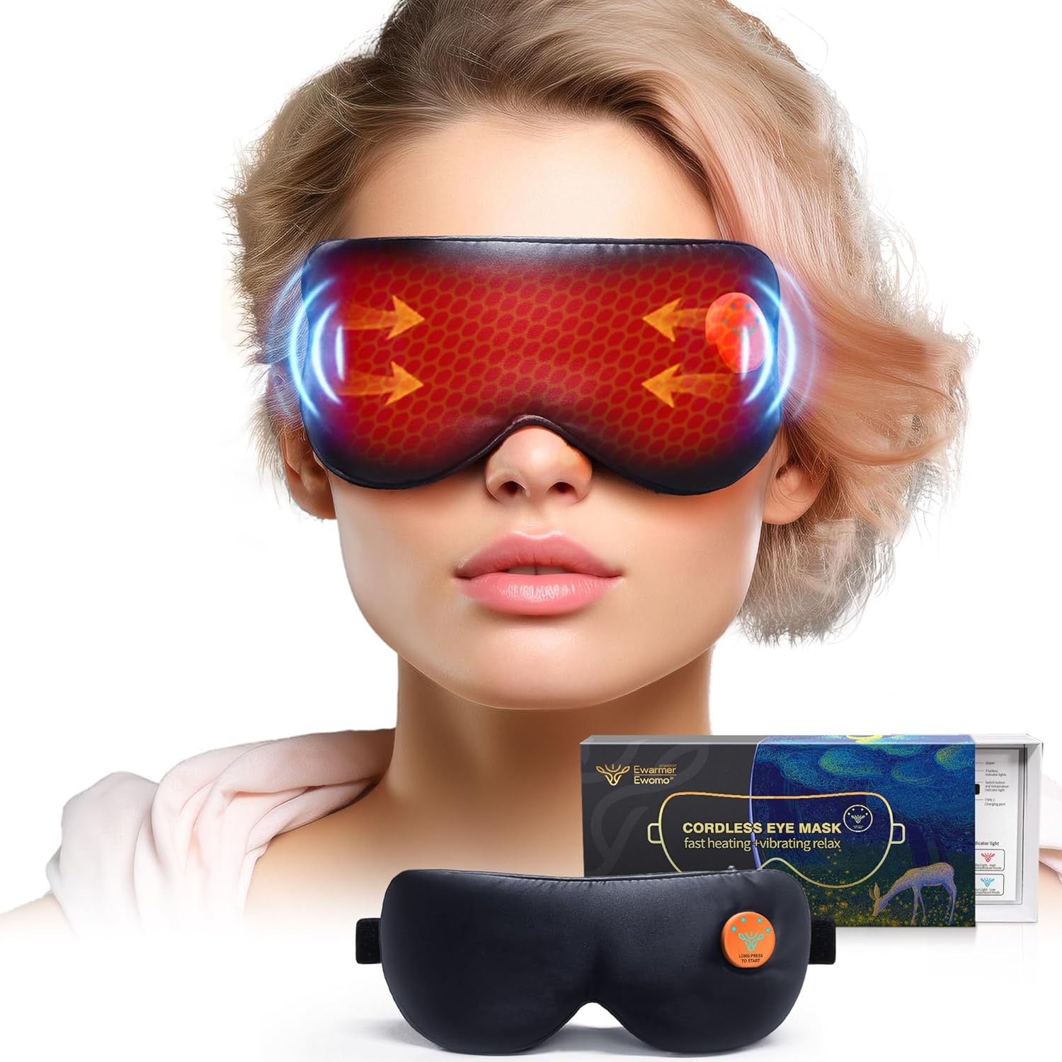 Electric Eye Massage Mask for Dry Eyes Relief, Cordless Heated Vibrating Eye Massager, Fast Heating Relaxation,Silk Sleep Eye Mask,100% Light Block,Light&Portable (Black)
