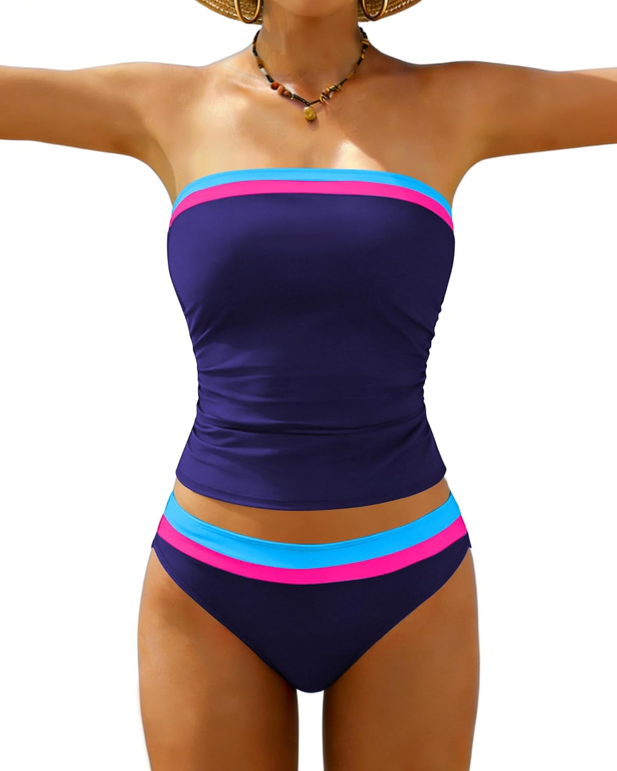 Jolefille Tankini Swimsuits for Women Two Piece Strapless Bandeau Bathing Suits Tops Full Coverage Modest Swim Suits 2026