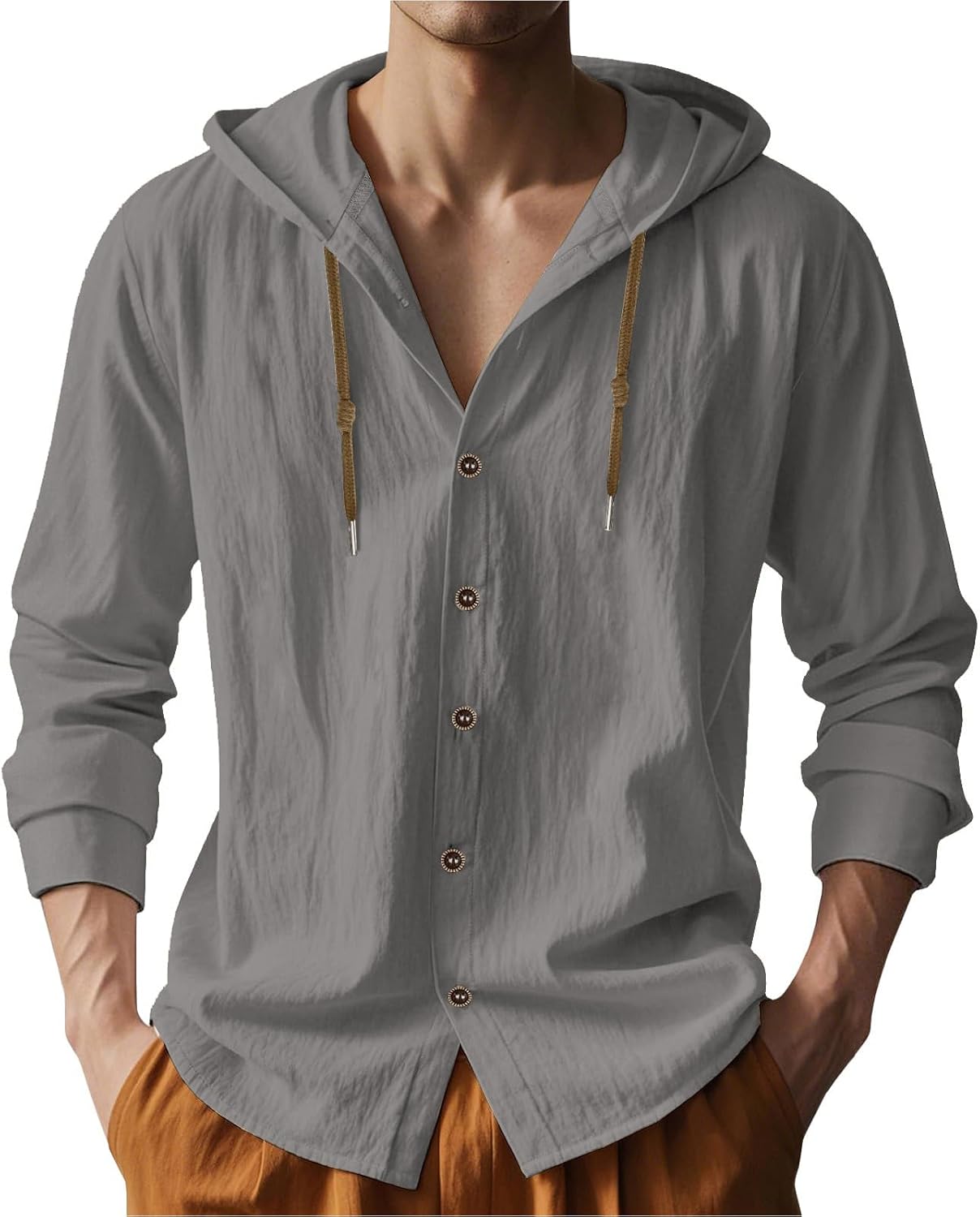 PIDOGYM Men Cotton Linen Long Sleeve Button Down Shirt Summer Casual Hawaiian Beach Tops Lightweight Fashion Hoodies