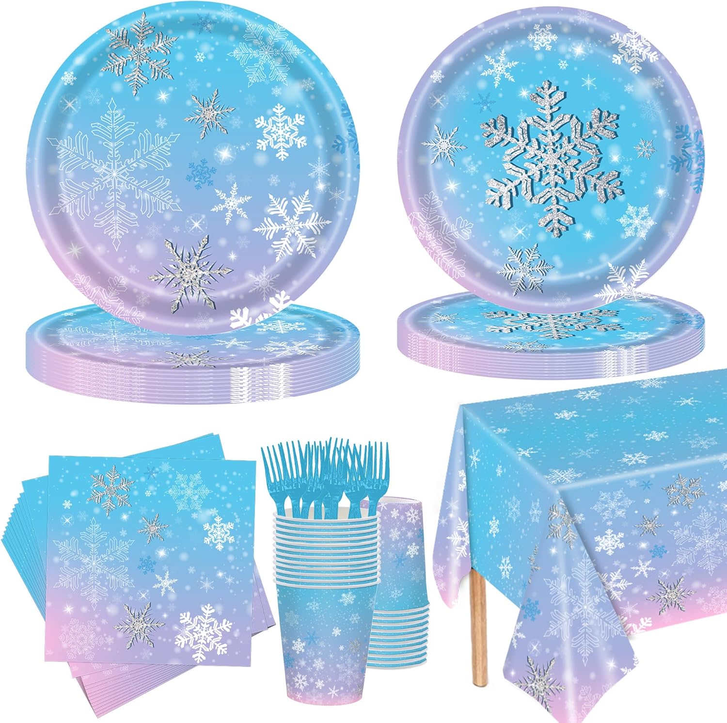- Elegant Winter Wonderland Design: Featuring beautiful blue and purple gradient colors adorned with intricate snowflake patterns, our set captures the magic of a winter wonderland. The sophisticated design adds a touch of elegance to any occasion, from Christmas and New Year parties to winter weddings and baby showers. The detailed snowflakes and vibrant colors are sure to delight guests and elevate the ambiance of your celebration.