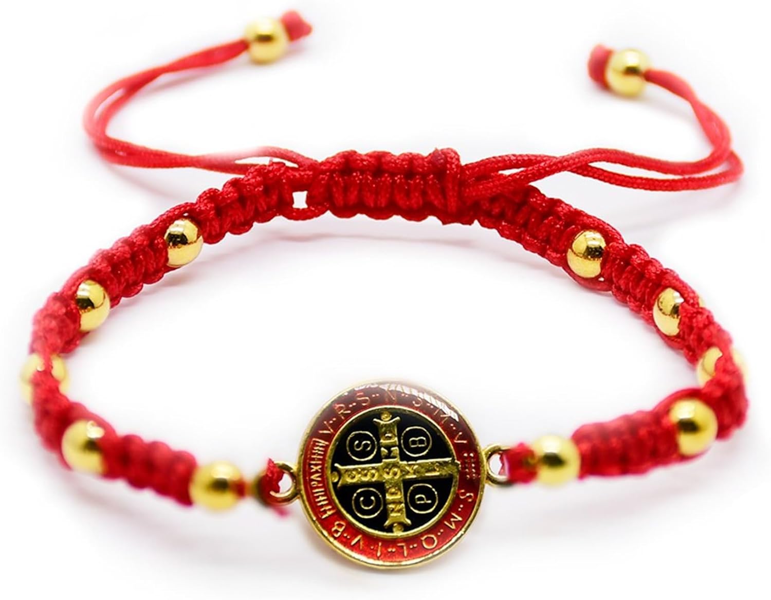 Catholic Rosary Handmade St Benedict Bracelet Adjustable Rosary Bracelet (Red)