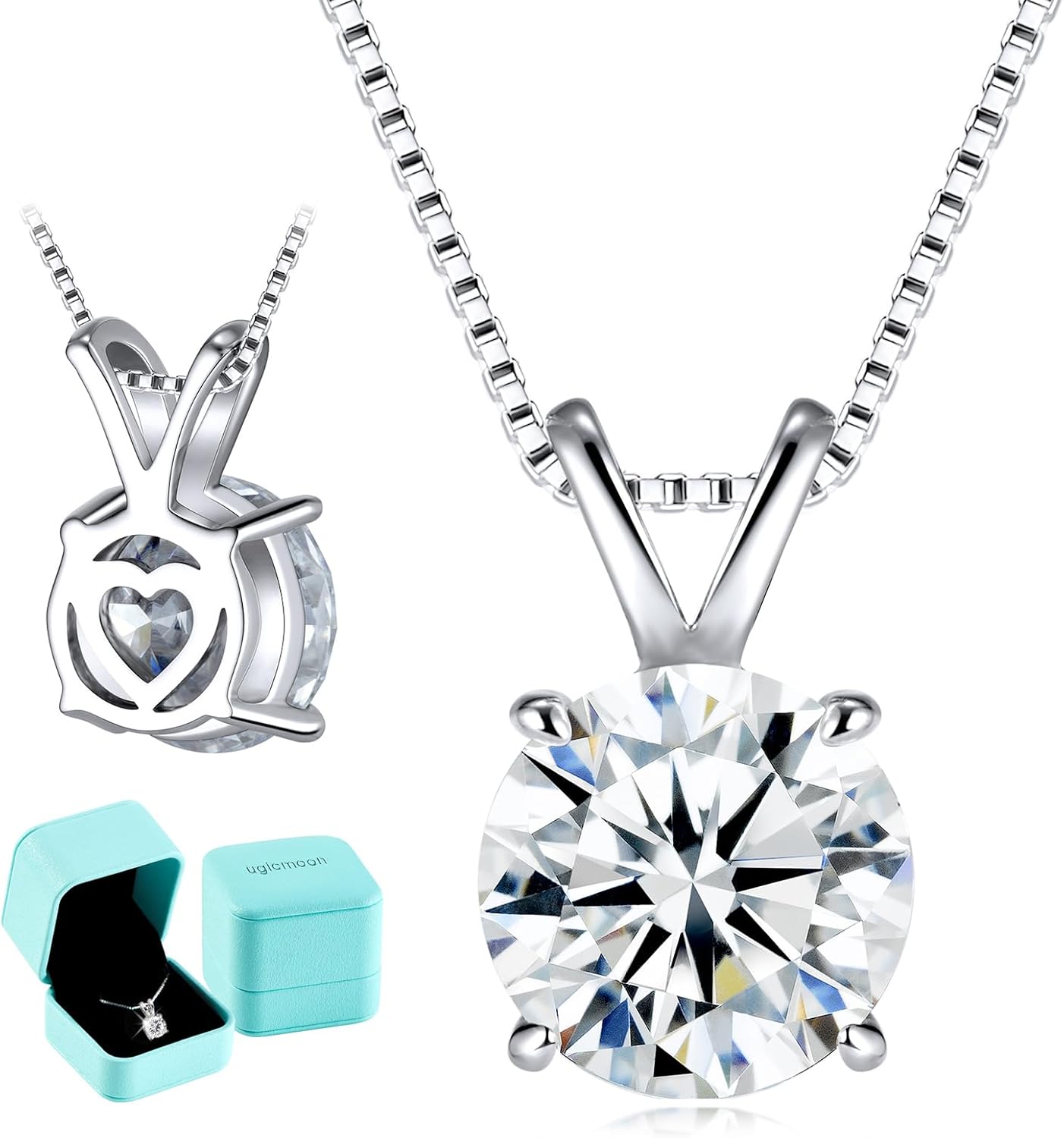 Moissanite Solitaire Necklace for Women, 1-3 Carat Lab Grown Diamond Pendant Jewelry D Color VVS1, S925 Sterling Silver with Gold Plating, 18+2” Silver Chain, Heart Engraving Gift for Wife Girlfriend Mom Yourself on Anniversary Birthday Wedding