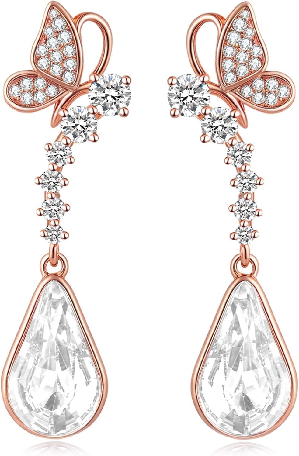 Cute Butterfly Austrian Crystal Teardrop Dangle Earrings for Women Trendy Drop Earring 14K Gold Plated Hypoallergenic Jewelry