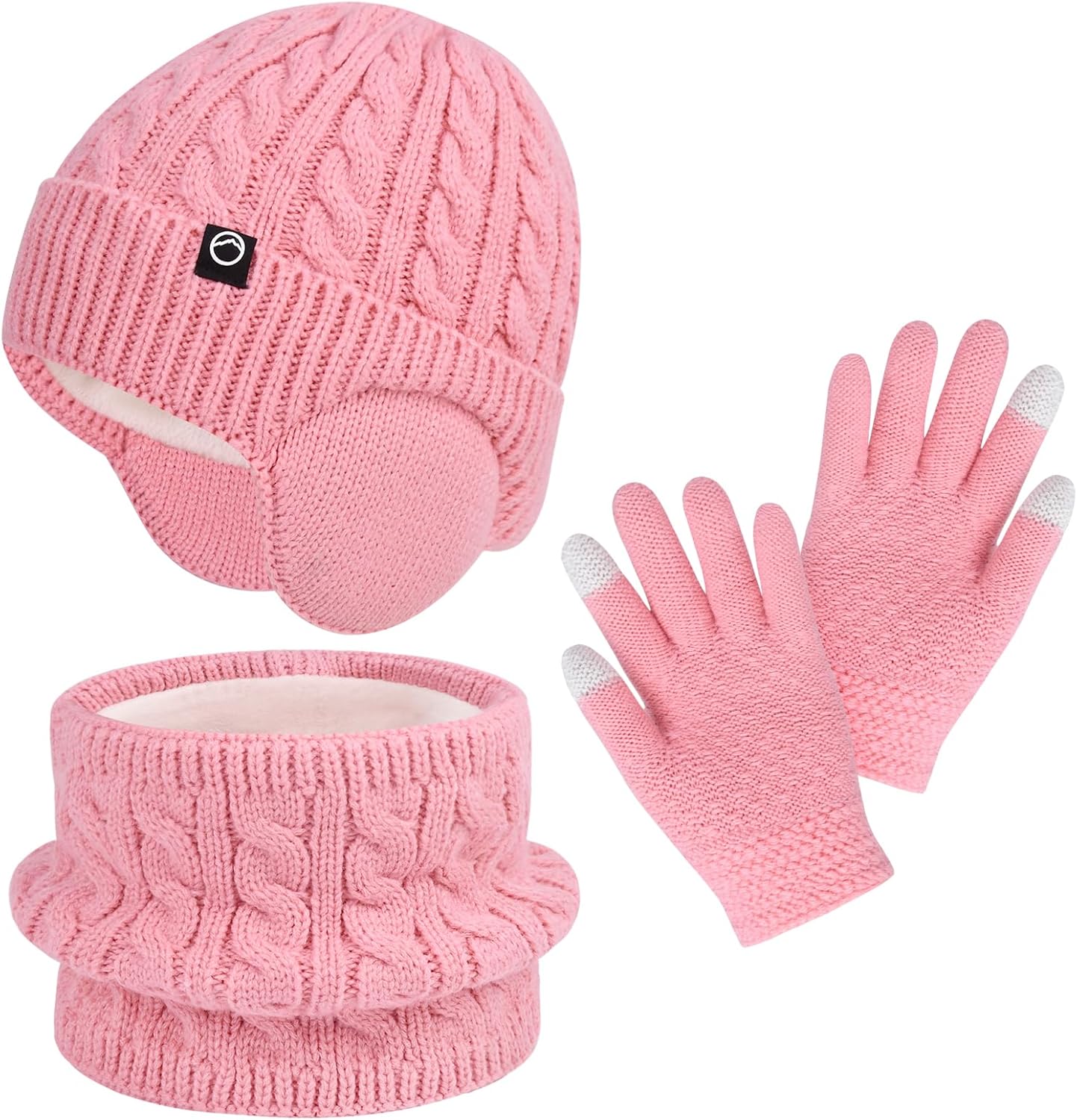ZOORON Kids Winter Hat Gloves Scarf Set,Girls Boys Toddler Beanie with Earflaps Neck Warmer Gaiter Mittens Fleece Lined Set