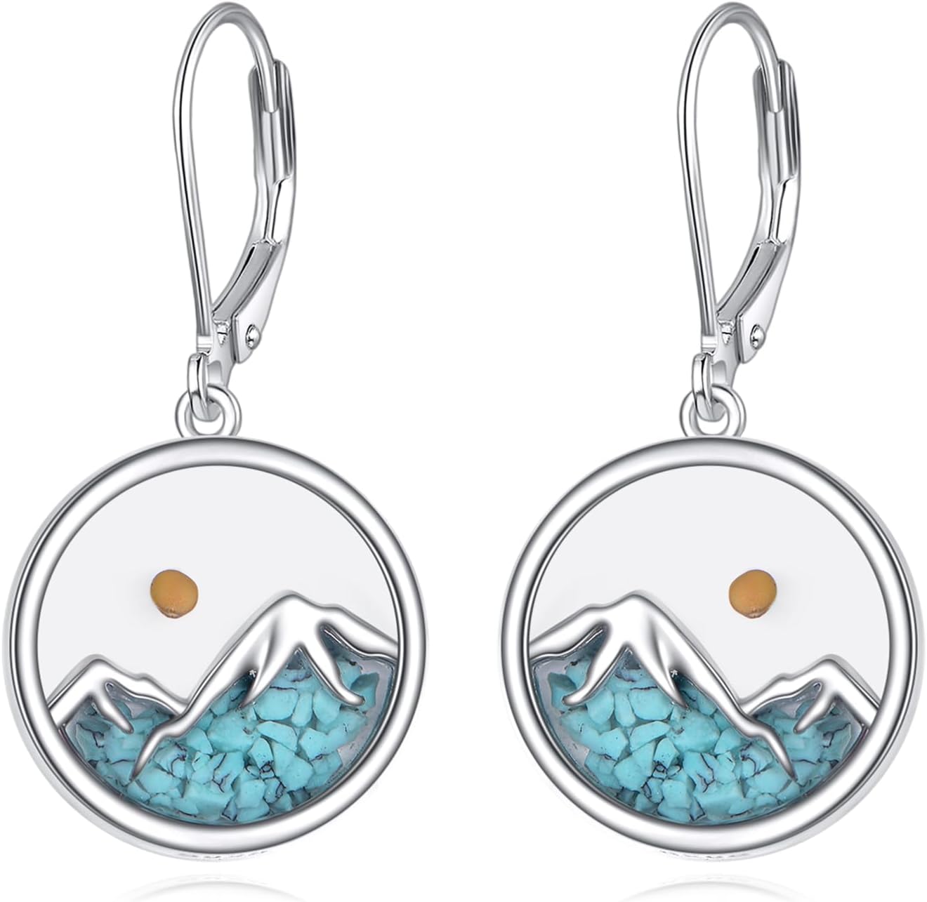 YFN Turquoise Mountain Earrings Sterling Silver Mustard Seed Drop Earrings Mountain Jewelry Gift for Skiers, Hikers, Campers, Climbers and Nature Lovers