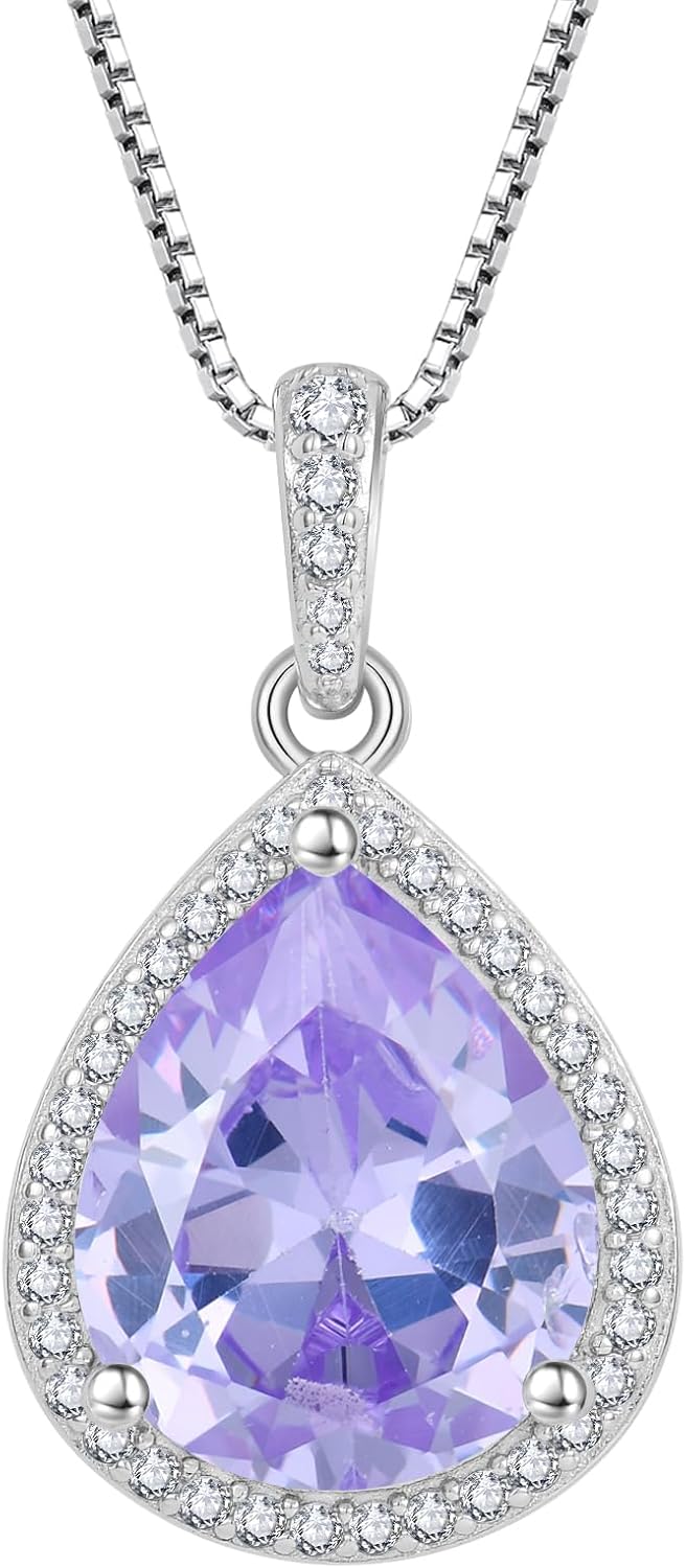 FJ Teardrop Pendant Necklace 925 Sterling Silver Birthstone Jewelry Gifts for Women
