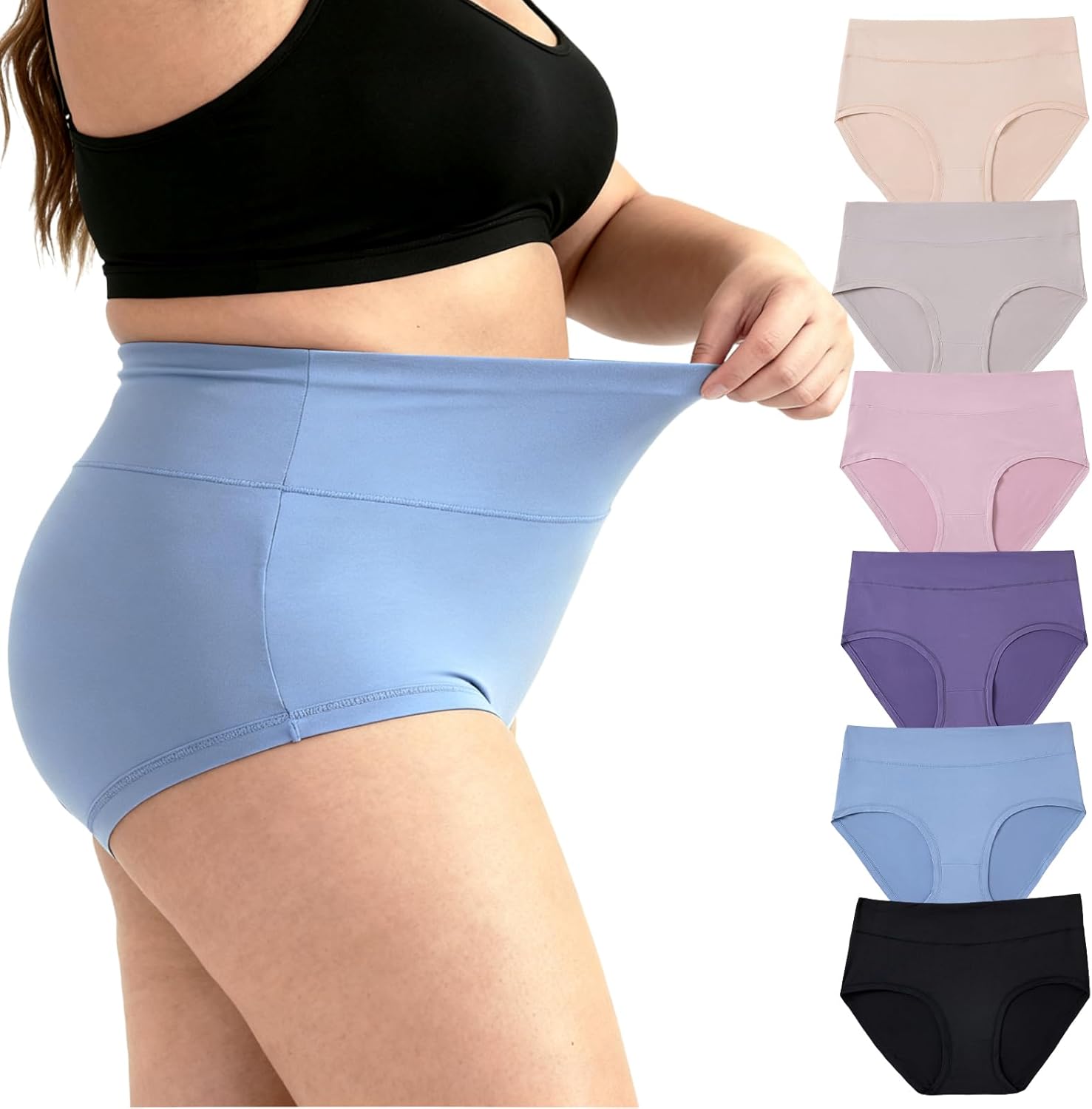 Women's Plus Size Underwear XL-5XL Panties High Waisted Briefs 6-Pack