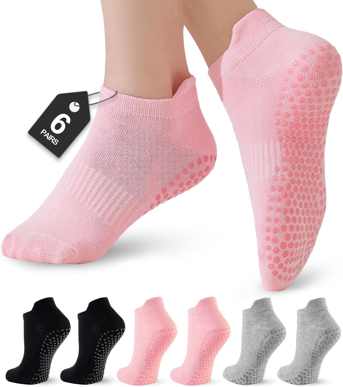 6 Pairs Pilates Socks for Women, Grip Yoga Crew Socks, Non Slip Grippy for Barre, Ballet, Dance & Hospital