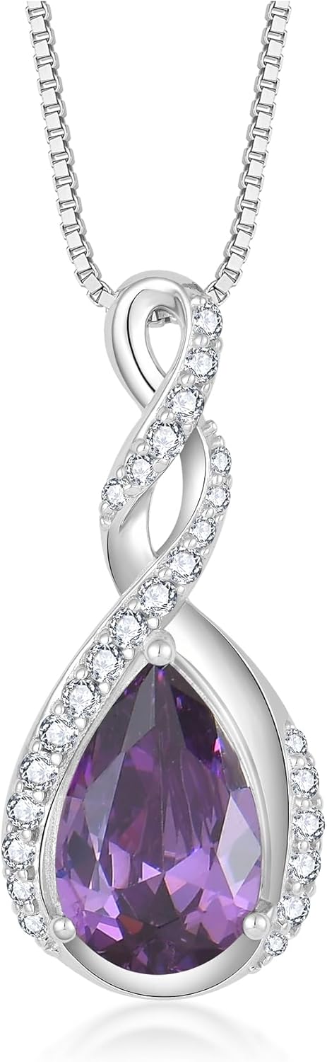 Fahonie 925 Sterling Silver Birthstone Necklace for Women,Infinity Teardrop Cubic Zirconia Pendant Necklace Anniversary Birthday Jewelry Gift for Women Wife Friend 18"+2" Chain