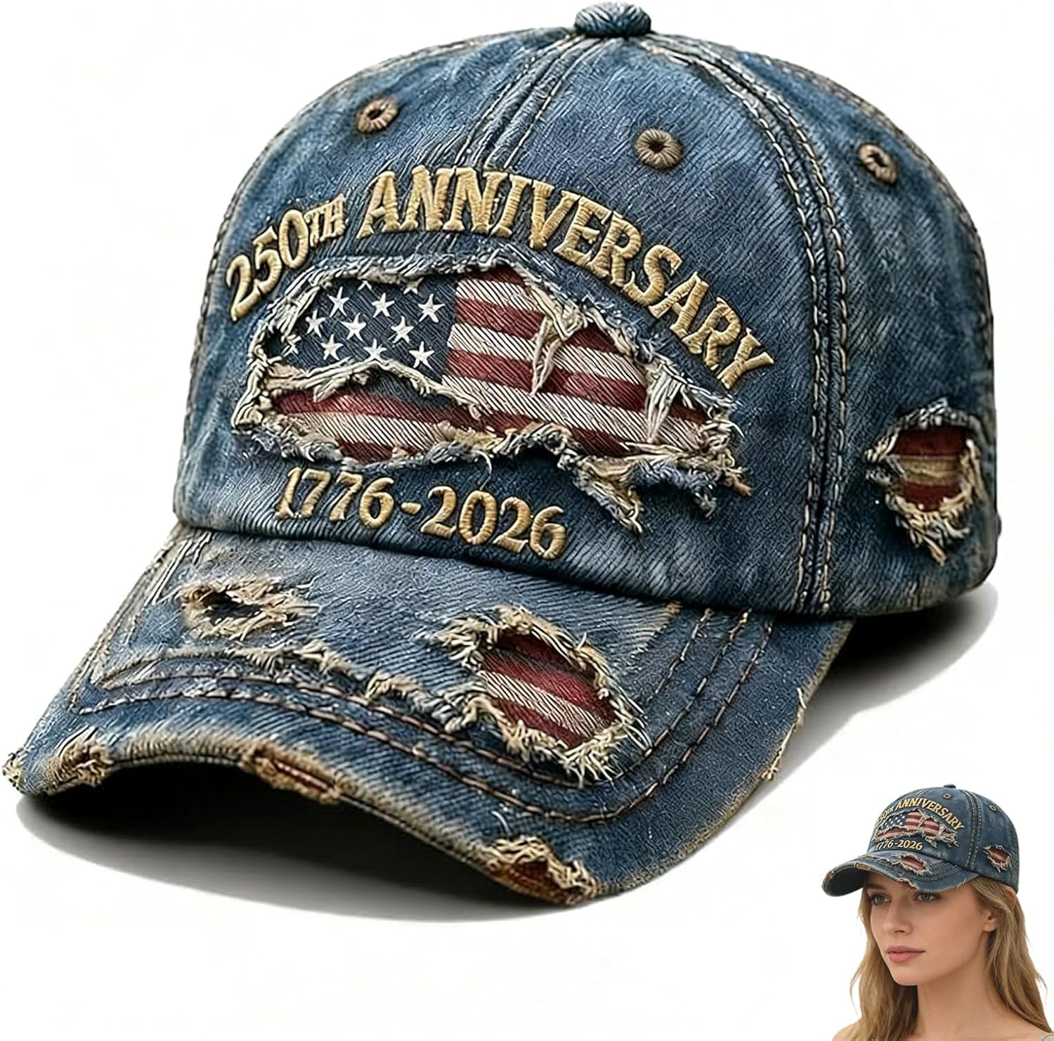US 250th Anniversary Celebration Casual Hat, Cool Washed Distressed Adjustable 1776-2026 Patriotic Baseball Cap for Men Women