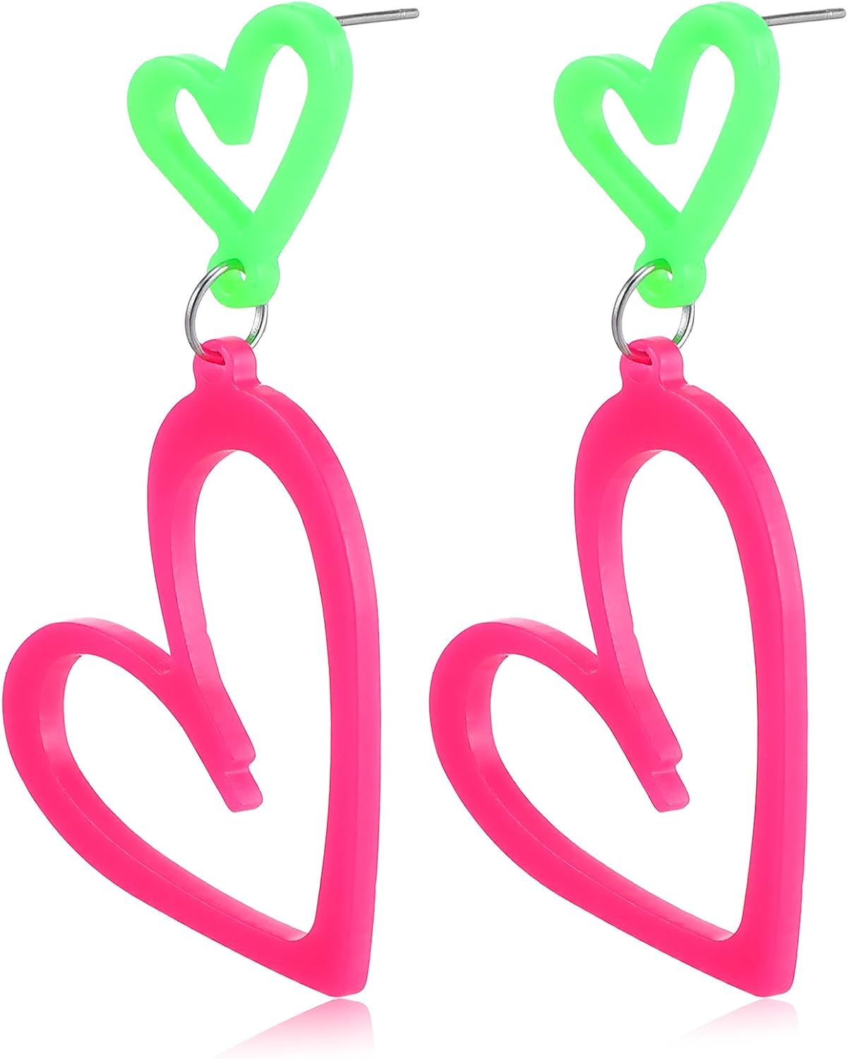 Bewudy Neon Heart Earrings for Women, 80s 90s Retro Drop Dangle Earrings Heart Acrylic Punk Earring 80s 90s Outfit Glow Party Accessories Gifts for Women