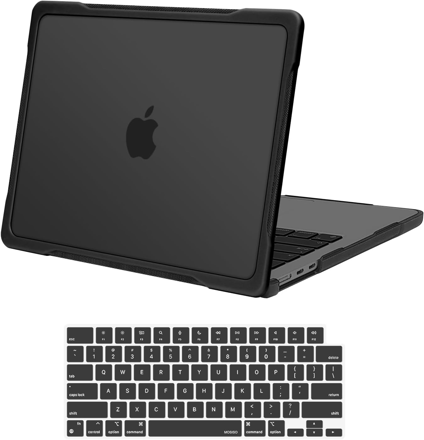 MOSISO Crack-Resistant Hard Case Compatible with MacBook Air 13 inch, 2026 2025-2022 M4 A3240 M3 A3113 M2 A2681, Shell with Soft TPU Bumper&Keyboard Cover for MacBook Air 13.6 inch Case, Black