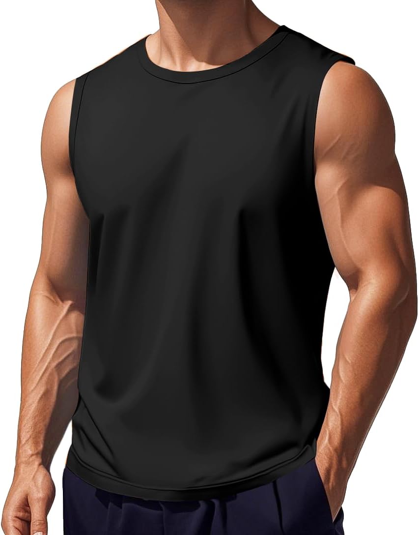 EKLENTSON Mens Sleeveless Shirts Lightweight Cotton Muscle Shirts Gym Training Active Tank Soft Summer Beach Casual Tank
