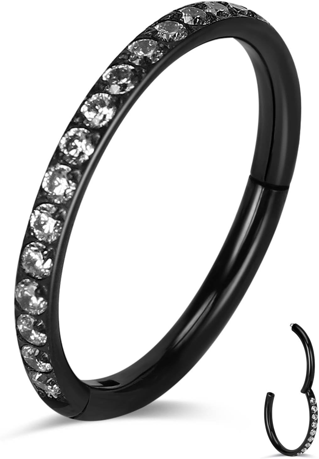 1Pcs 18G 16G Titanium Cartilage Earrings Crystal Nose Hoop for Women Diameter 6mm 8mm 10mm 12mm CZ Helix Conch Daith Rook Tragus Lobe Snug Lip Nostril Rings Body Piercing Jewelry-Silver-Gold-Black
