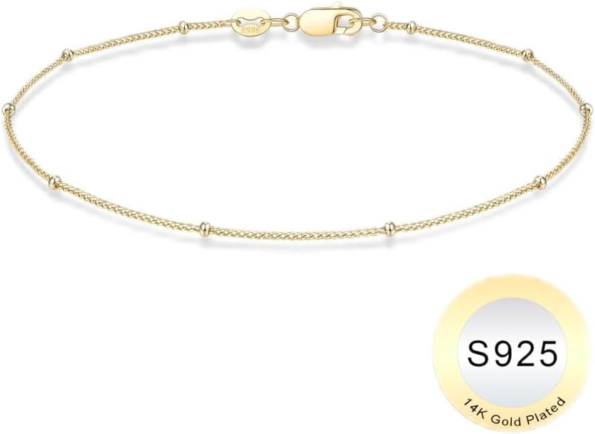 IEFWELL S925 Sterling Silver Bracelet for Women - Solid 14K-Real-Gold-Plated Satellite Bead Chain Bracelets 6.5/7/7.5/8/8.5/9 Inches Sterling Silver Bracelet Jewelry Christmas Birthday Gifts for Women