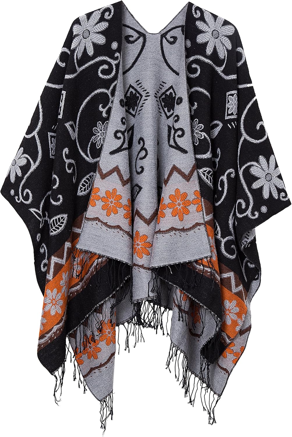 Urban CoCo Women's Printed Tassel Open front Poncho Cape Cardigan Wrap Shawl