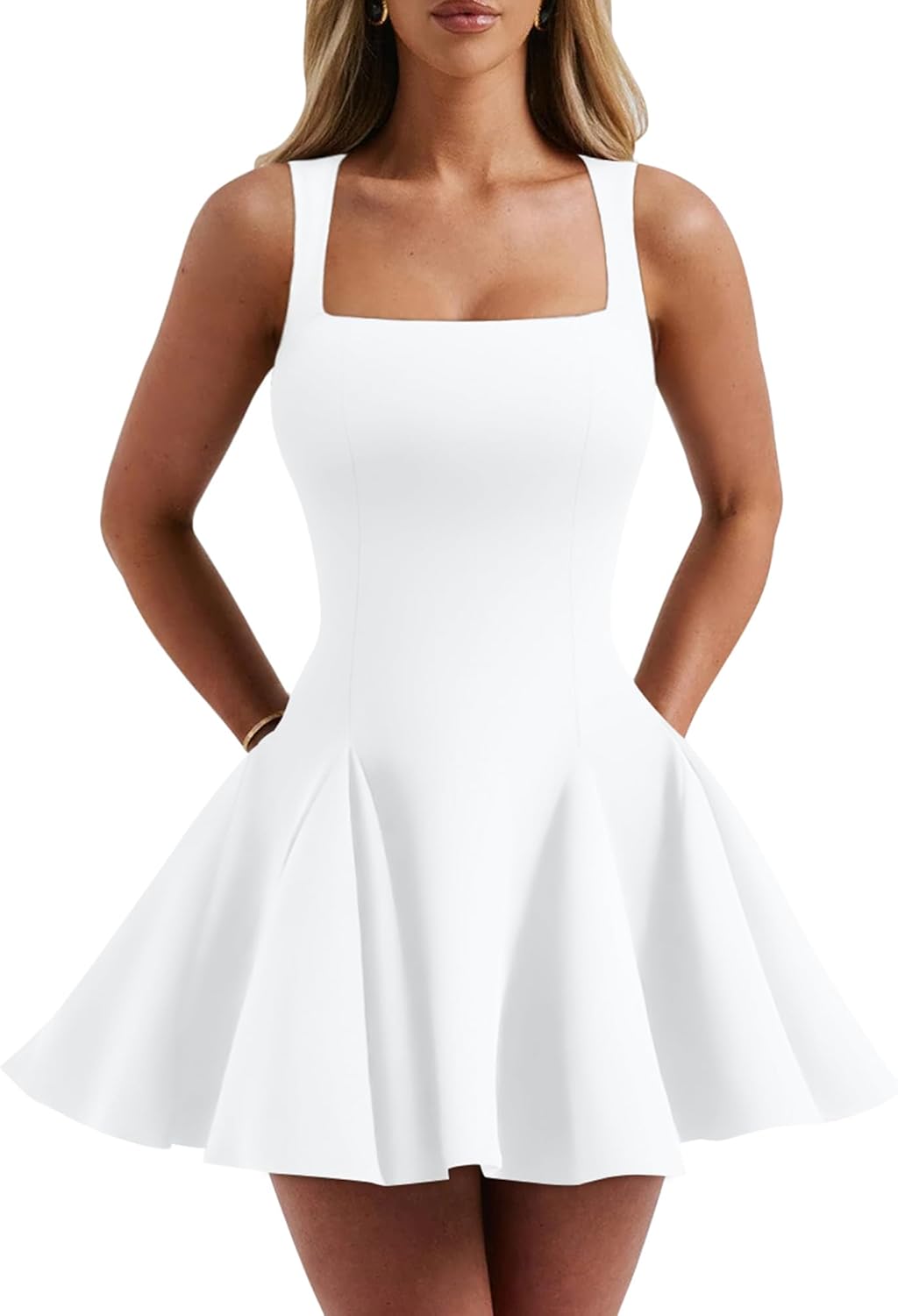 DAAWENXI Women's Sexy Sleeveless Square Neck Mini Dress Bodycon Party Club Tank Short Dresses