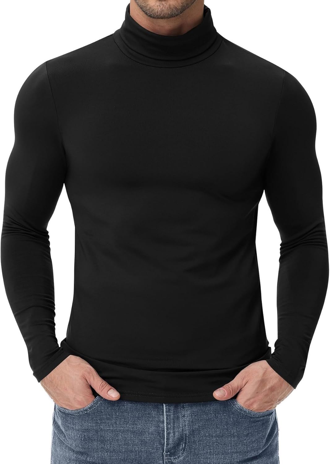 Poriff Men's Turtleneck Tops Fleece Lined Pullover Thermal Long Sleeve Casual Slim Fit Basic Sweater
