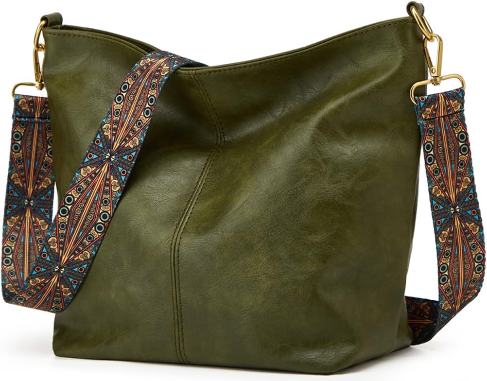Hobo Bag for Women Crossbody Handbags Large Designer Ladies Bucket Purse PU Leather Shoulder Bags with Wide Shoulder Strap