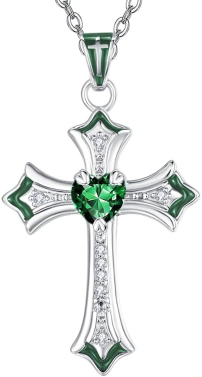 HeartMelody Cross Necklace for Women 18K White Gold Plated Heart CZ Birthstone Cross Faith Pendant Necklaces Religious Christian Jewelry Anniversary Birthday Mother's Day Gifts for Women