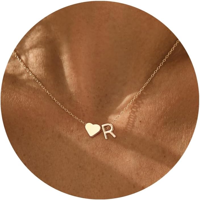 Initial Necklace for Women 18K Gold Plated Stainless Steel Tiny Heart Letter Necklace Personalized Name Necklace