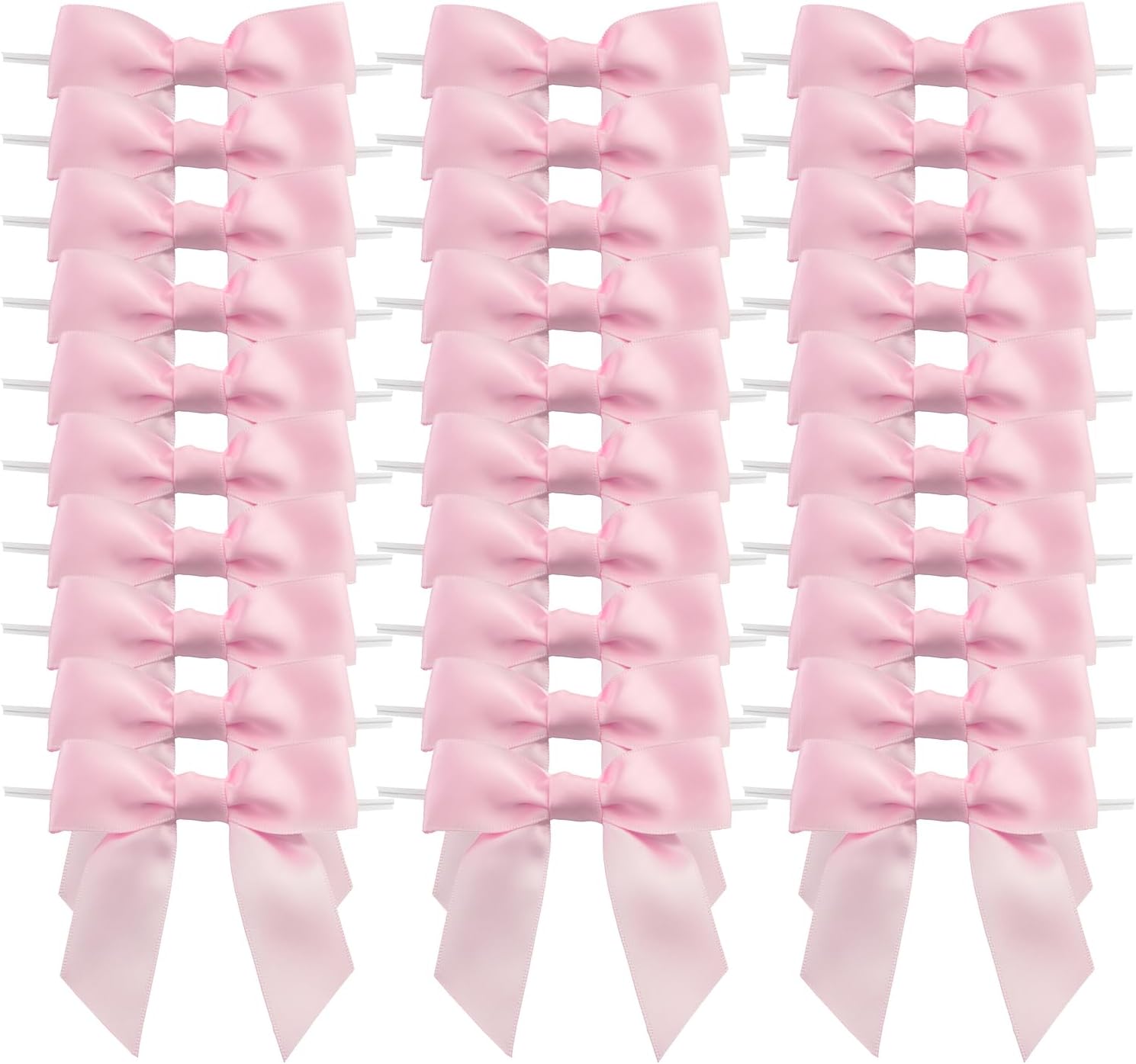 7Rainbows 30pcs Boutique 2.5" Pink Satin Ribbon Twist Tie Bows for Tying Up Packages Gift Wrapping