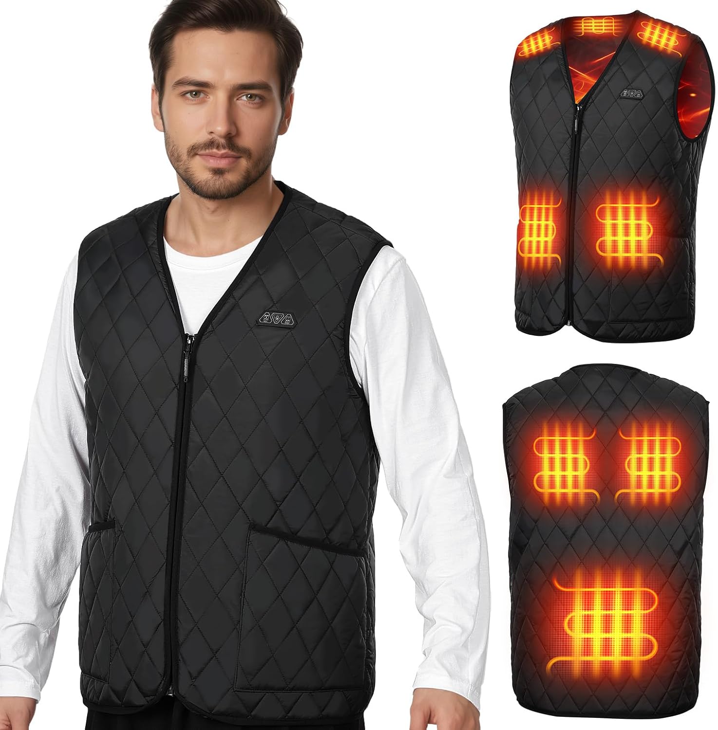 KEMIMOTO Heated Vest for Men, Winter Heated Jackets for Men, Mens V-Neck Puffer Vest, Quilted Vests (Batteries Not Included)