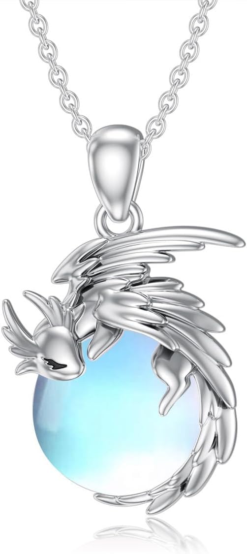 LONAGO Dragon Necklace with Birthstone Sterling Silver Wyvern Dragon Pendant Necklace Gift for Women