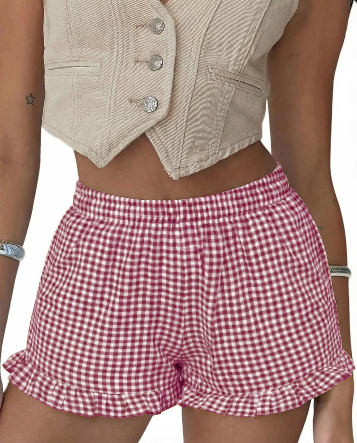 Aoulaydo Boxer Shorts for Women Pajama Gingham Shorts Casual Lounge Sleep Plaid Y2K Beach Bottoms for 2026 Summer