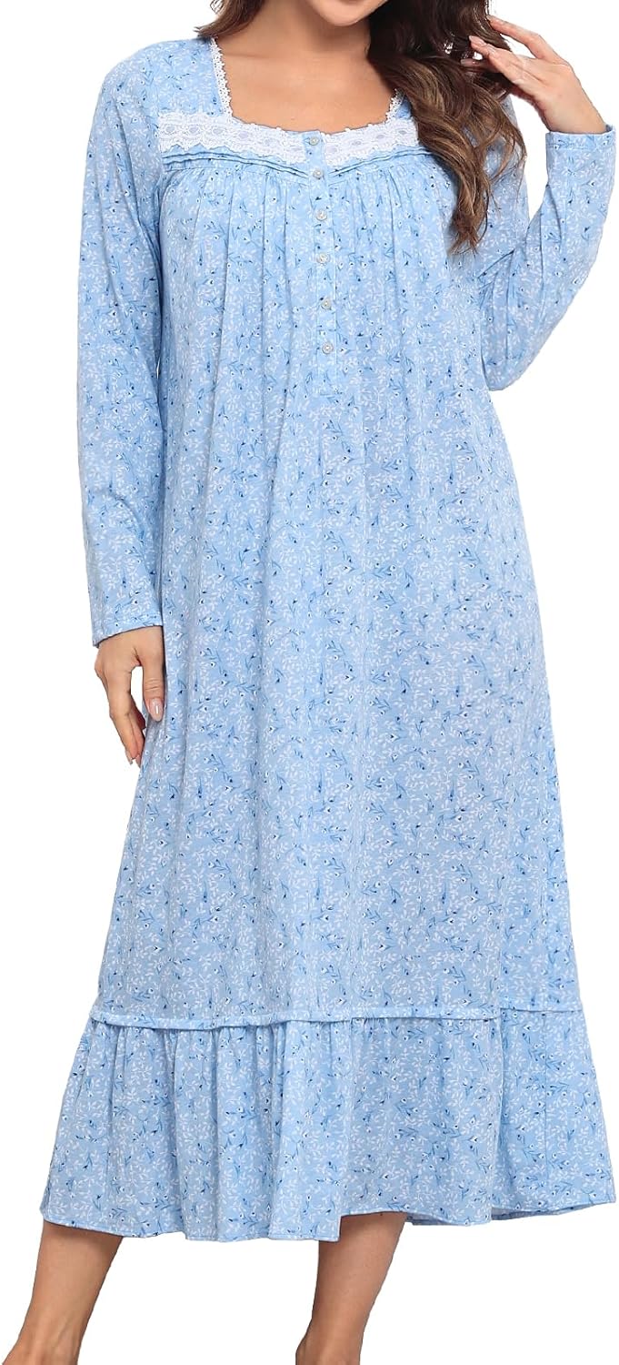 FMIRREO Long Sleeve Nightgowns for Women Soft Cotton Night Gowns Victorian Nightdress Vintage House Dress