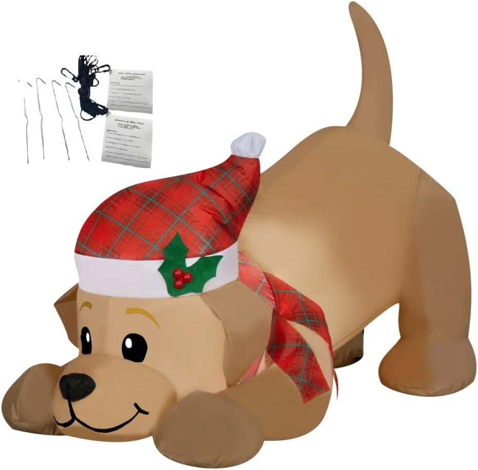 - Delight guests and passersby with a yard Inflatable! This charming Christmas Yellow Lab Puppy Dog with Santa Hat 3.5 Foot inflatable makes a delightful addition to your decorations.