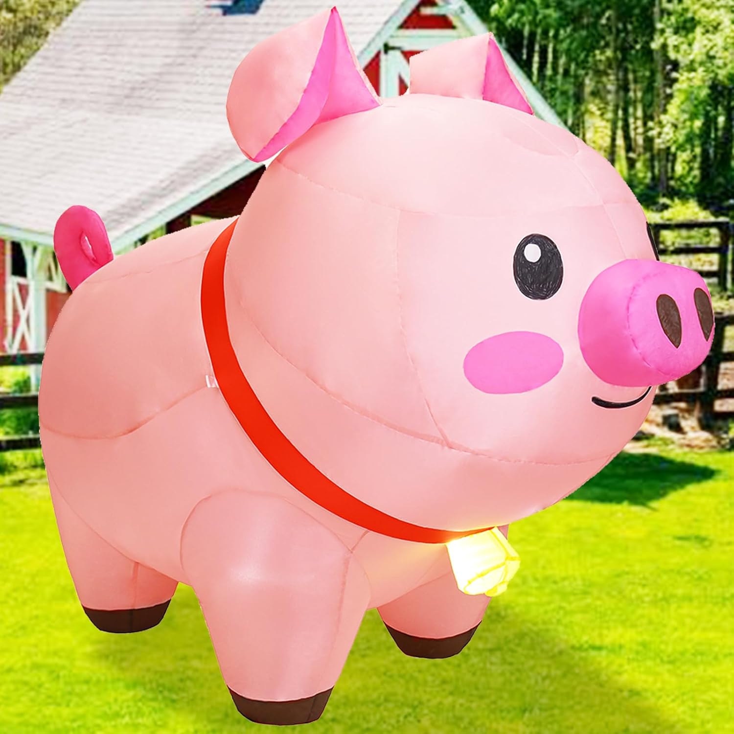 - 6 FT Long Cute Pig Inflatables: This inflatable pig features a detailed and realistic pig design, accented with flesh-colored and full-figured shapes, the unique light-up bell design on the chest is eye-catching.