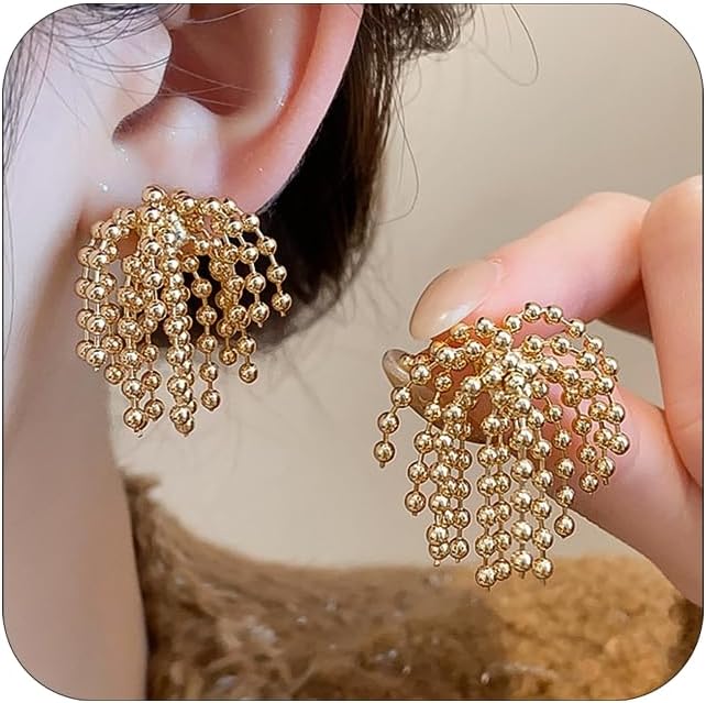 Gold Earrings for Women Trendy Cute Firework Stud Earring Cluster Earrings Metal Beads Tassel Dangle Statement Earring for Women Fashion Jewelry