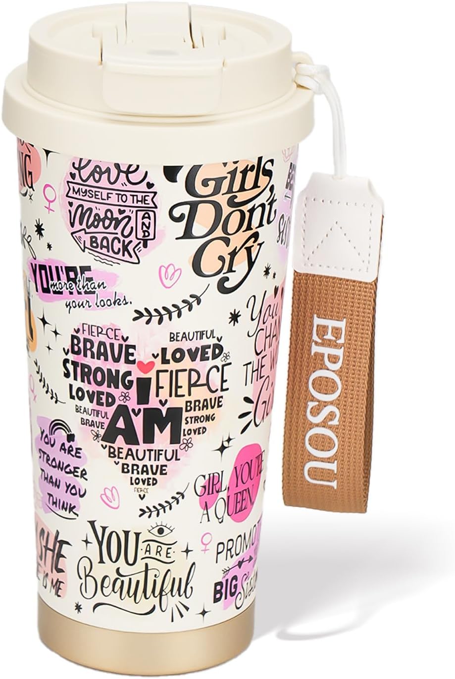 - 【Perfect Dimensions】This 16-ounce Stainless steel-lined cup stands out with its compact, elegant capacity design—7.16 inches tall and 3.62 inches wide. Its carefully proportioned shape ensures worry-free portability, while the refined lanyard adds a touch of style to your travels. Carry it with grace anytime, anywhere, and savor every moment of your coffee experience,cute travel coffee mug.
