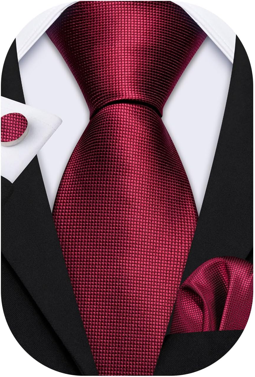 Barry.Wang Plain Men Silk Ties Extra Long Stain Necktie for Wedding Business Handkerchief Cufflinks Set Solid Colors