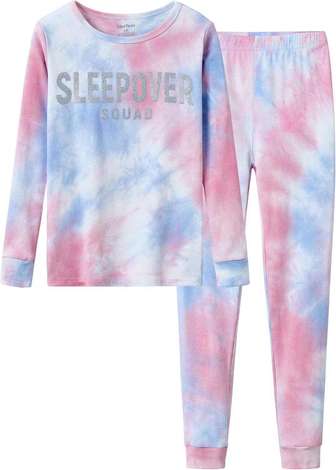 Sleepover Pajama Set for Girls Tie Dye Cotton Snug-fit Long Sleeve PJ Size 4T-14
