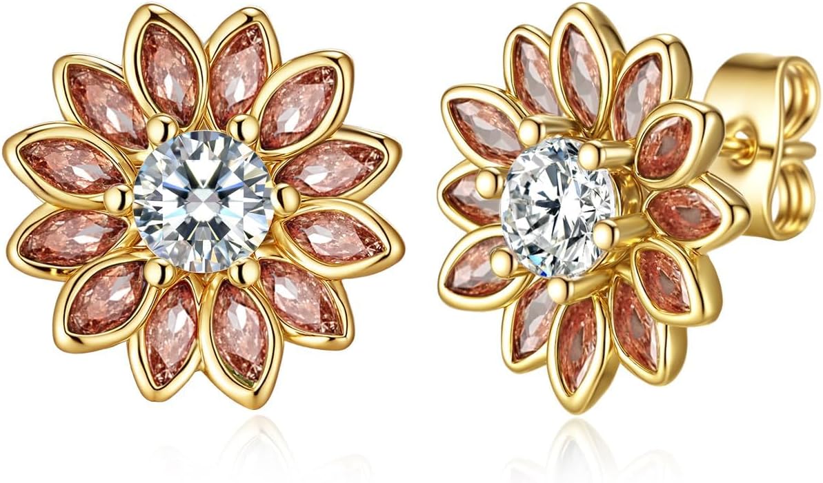 EVEVIC Austrian Crystal Flower Stud Earrings for Women Fashion 14K Gold Plated Hypoallergenic Jewelry