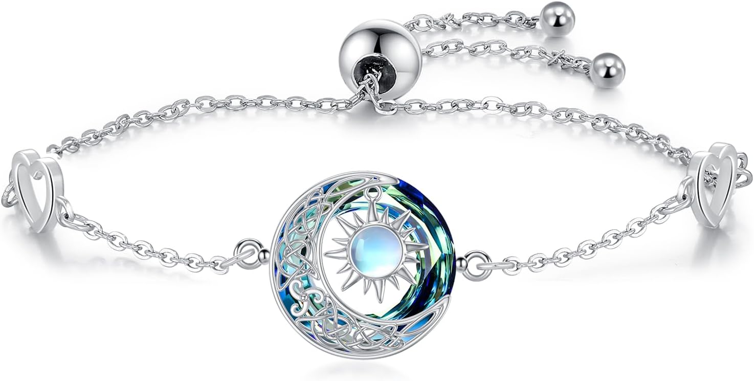 OHAYOO Crescent Moon Bracelet for Women 925 Sterling Silver Sun and Moon link Bracelet Crescent and Lunar Jewelry Romantic Celestial Gifts for Her Ideal for Birthday, Best Friend