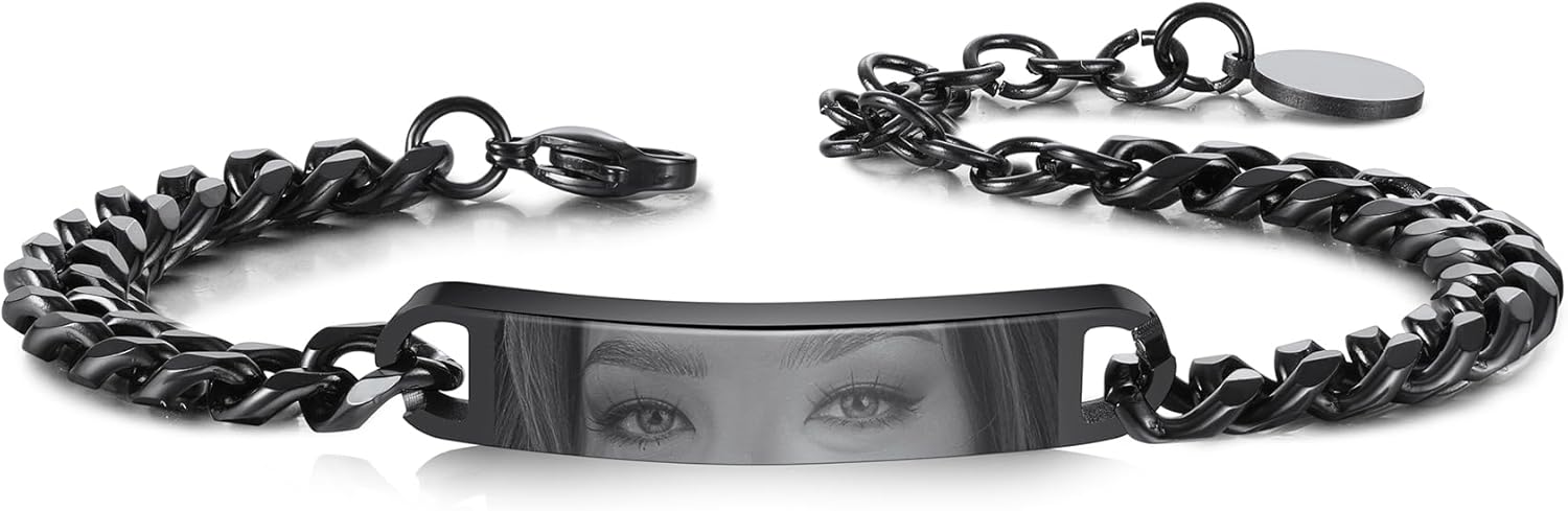 MeMeDIY Custom Eye Photo Bracelet for Men Adjustable Stainless Steel Bracelets with Photo/Name/Text Engraving Personalized Gifts for Husband Boyfriend Couple Anniversary