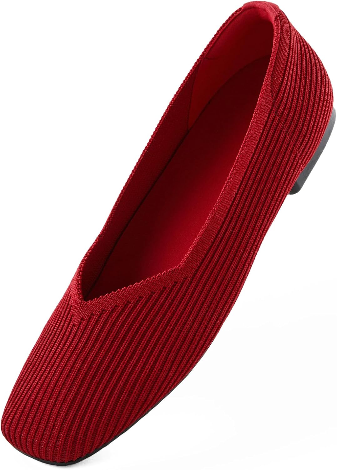 Arromic Flats Shoes for Women, Square Toe Ballet Flats Shoes, Washable Comfortable Knit Flats for Women, Soft Slip on Black Flats for Dressy Wedding Work Office Casual Size 8
