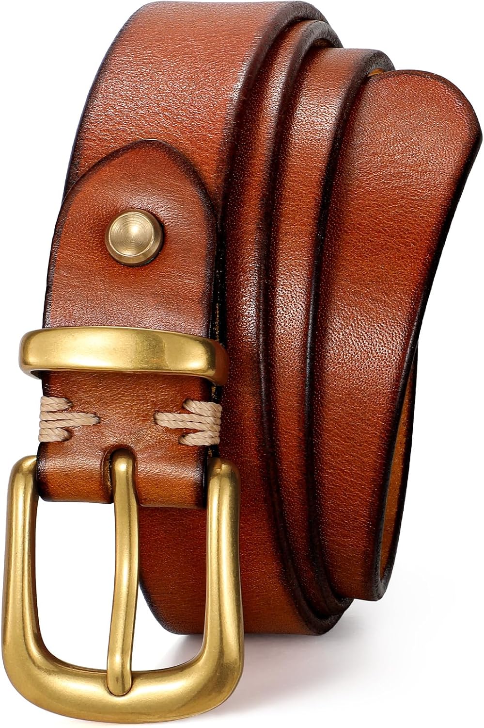 WHIPPY Womens Genuine Leather Belts for Jeans Fashion Vintage Ladies Full Grain Solid Leather Belt with Gold Buckle